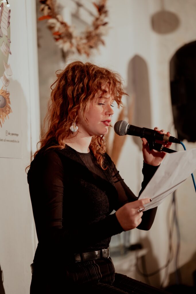 Mit Texten in Form von Poetry Slams, Prosa, Lyrik und Kurzgeschichten, schafft Caro es, gesellschaftliche, soziale und kapitalistische Strukturen kritisch zu hinterfragen und sich und anderen einen Spiegel vorzuhalten.