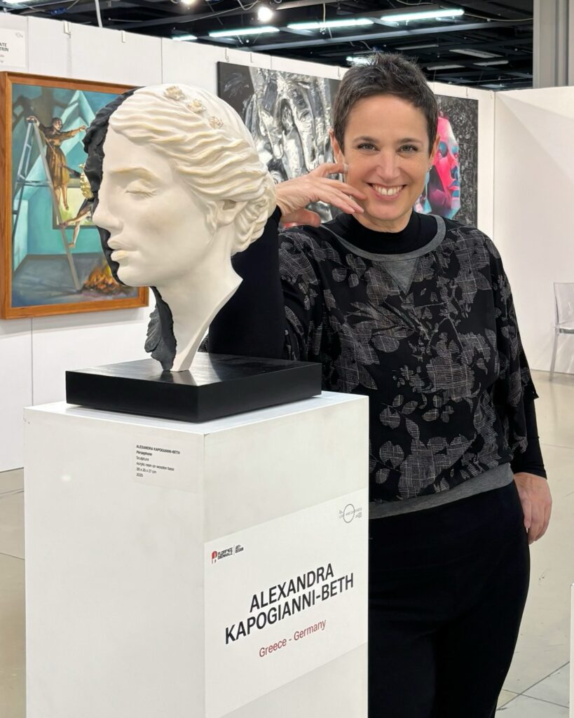 Alexandra Kapogianni-Beth ist eine griechische Kunsthistorikerin und Bildhauerin, die in Deutschland lebt und arbeitet. Ihre künstlerische Laufbahn begann vor über 20 Jahren mit ersten Experimenten in der Bildhauerei und dem Zeichnen. Im Laufe der Jahre vertiefte sie ihr Wissen durch zahlreiche Kunst- und Bildhauerkurse im In- und Ausland und absolvierte schließlich ein Bildhauerstudium am IBKK Design- und Kunstzentrum in Bochum-Wattenscheid, wo sie heute auch als Dozentin tätig ist.